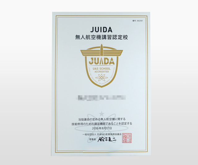 北九州ドローンスクールは、2015年10月よりスタートしたJUIDA認定制度に基づいた「認定スクール」です。